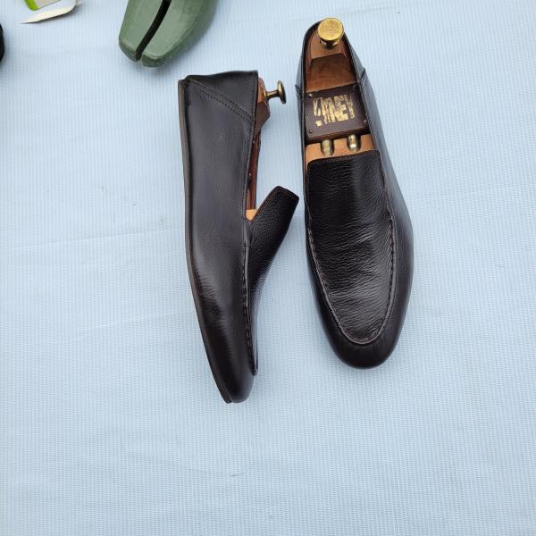 Elevate your wardrobe with these sophisticated brown leather penny loafers, where timeless design meets contemporary comfort. These luxurious slip-ons feature a rich grain leather texture that adds character while ensuring durability. Each pair comes with premium wooden shoe trees to maintain the shoes’ pristine shape and extend their lifespan. Perfect for both business and casual settings, these versatile loafers seamlessly transition from office wear to weekend outings. The classic brown shade pairs effortlessly with any outfit, from suits to chinos and jeans.