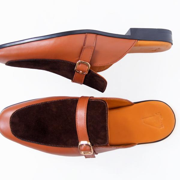 Elevate your style with our exquisite handmade leather half shoe. Crafted with the finest quality leather, this shoe is a proof to craftsmanship and comfort. The rich tan leather upper contrasts beautifully with the suede brown panel, creating a sophisticated and modern look.